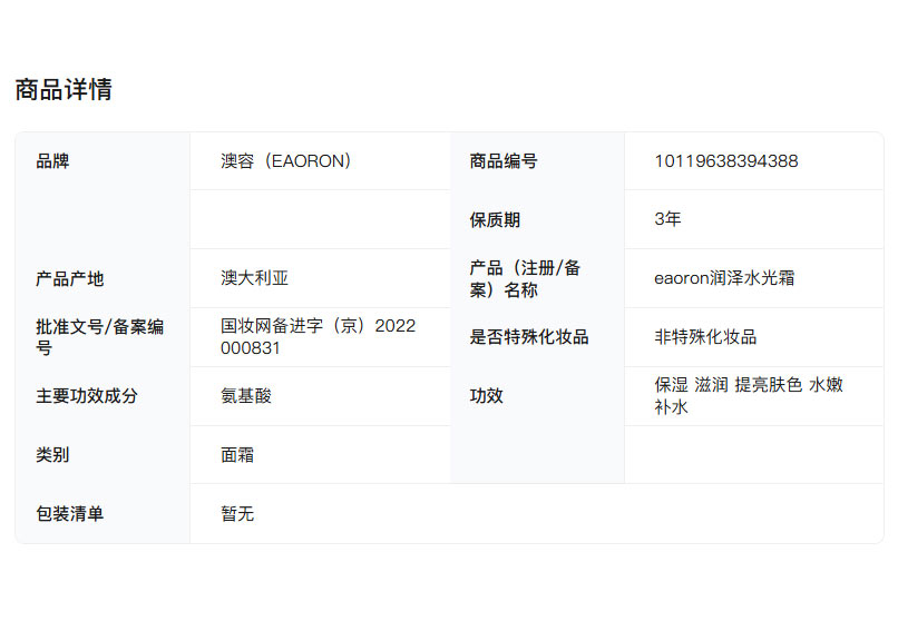 | 功效: | 长效保湿、焕亮肌肤、沁透补水 |