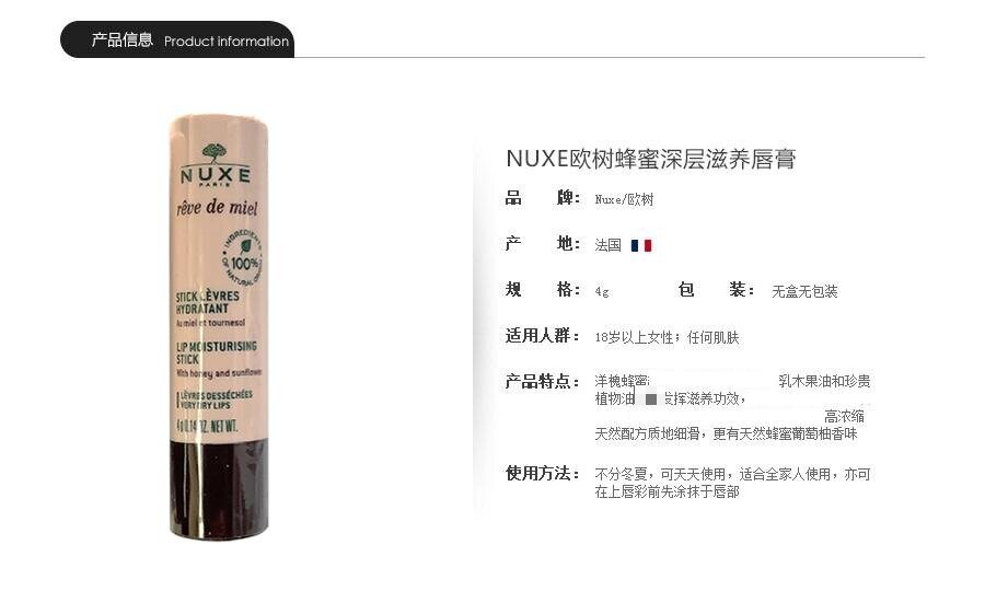 NUXE 法国欧树蜂蜜蜂蜜水润滋养润唇膏 海外本土原版