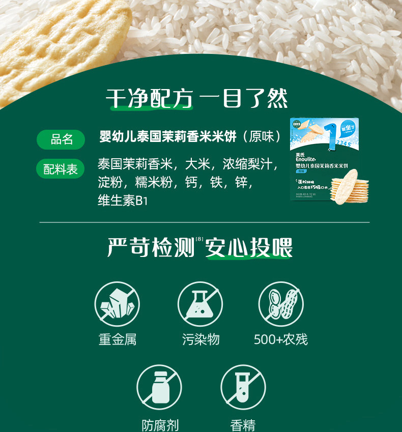 Engnice 英氏婴幼儿泰国茉莉香米米饼1阶 蔬菜味 48g