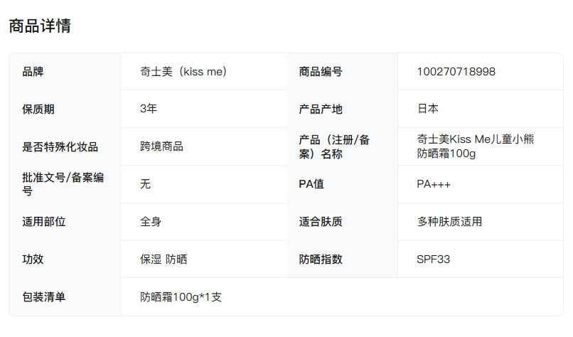 Kiss Me 日本奇士美儿童小熊防晒霜 温和款 100g 海外本土原版