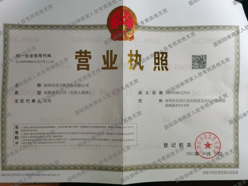 深圳市优贝购贸易有限公司,经营范围:经营电子商务;国内贸易;进出口业务。保健品、乳制品(含婴幼儿配方奶粉)、母婴食品、预包装食品的批发与销售。日用品,化妆品,玩具,服装,鞋帽,母婴用品的批发与销售,摄