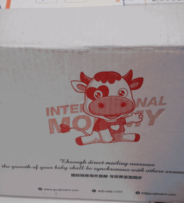 拼了很多东西一起买的,很喜欢国际妈咪的纸箱,包装很好,到货也很快。宝贝已经吃了一瓶了,很香很正,应该是正品