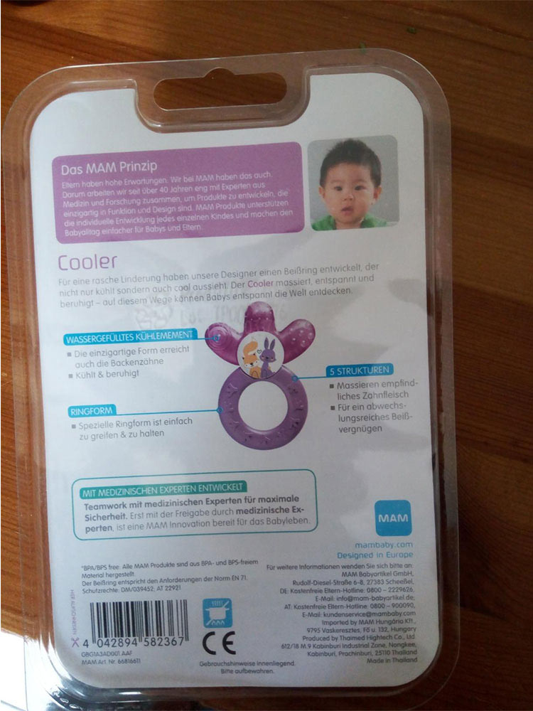 自从有了这个牙胶之后,儿子不玩儿别的了,一直抱着这个啃,上面的凸起纹理正好可以给他磨牙,看着他吃的那么香,老母亲我心里也挺欣慰的,质量很放心,孩子用的东西都是在国际妈咪买的,很方便,啥都有,主要是质量也很靠谱