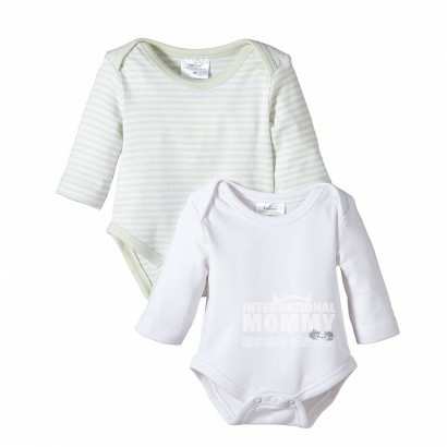 Twins 美国双胞胎白色条纹中性长袖哈衣爬行服两件装 海外本土原版