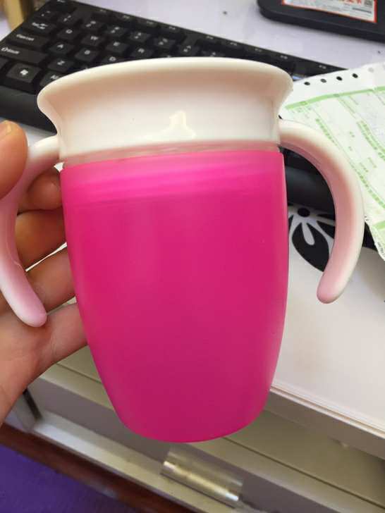 杯子颜色好看,也容易清洗,倒着也不会漏水。宝宝7个月,很容易抓握,就是还没有学会喝水?需要点时间学习。