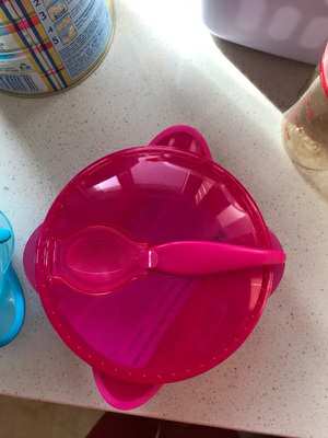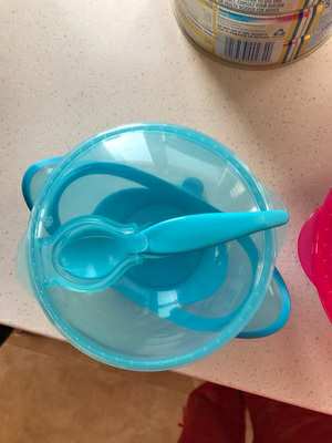 很喜欢的小碗,没有任何异味,宝宝吃饭不易洒,而且碗上带个勺子干净卫生又方便带出去用。
