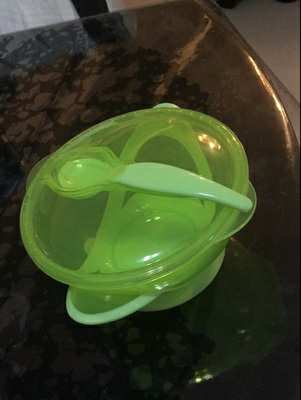 碗质量很好 ,颜色也很好, 勺子这块的设计非常不错, 方便又干净,宝宝外出可以用私家碗了。