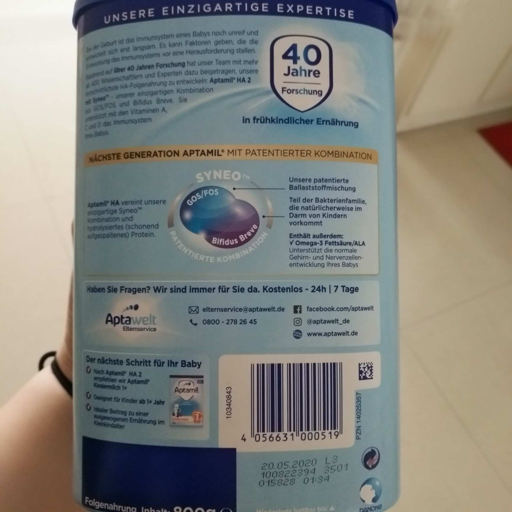Aptamil 德国爱他美HA适度半水解婴幼儿奶粉2段 6个月以上 800g 德国本土原版