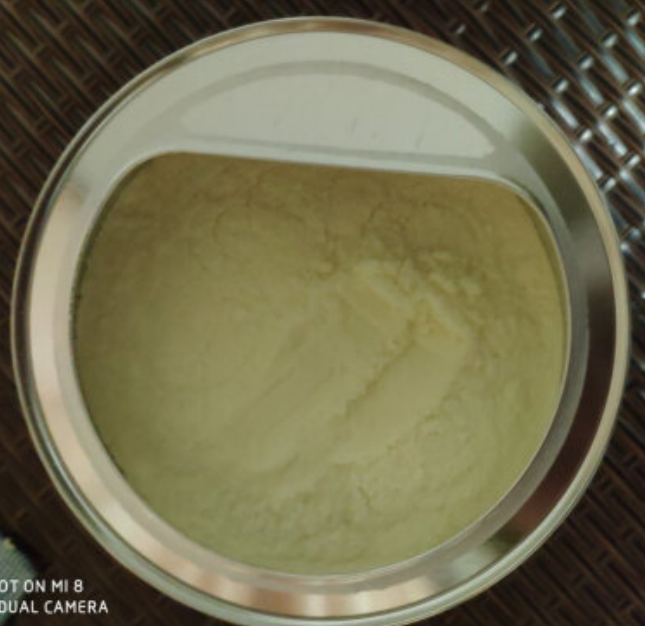 从重庆发来的,还有关税。箱子里还有气柱包装,很结实。打开看奶粉,是不错的样子。散散的粉,黄黄的颜色。