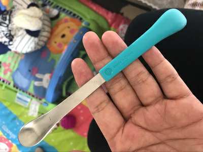 圈里宝妈推荐的两头勺,确实不错。一头硬物比如挖苹果泥,一头相对软用来吃辅食,而且勺体不大,可以让宝宝减慢进食速度,挺精致的。