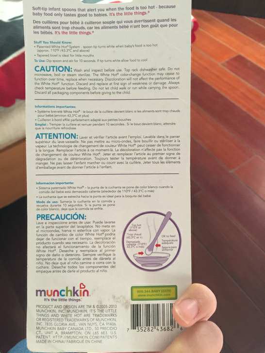 Munchkin 美国麦肯齐宝宝辅食感温变色软头勺 海外本土原版