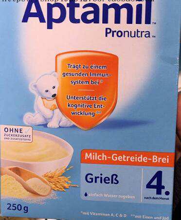 差五天五个月第一次吃米粉,用差不多30ml水冲的全部吃完,吃了一口就张嘴要吃下一口,还不错,孩子不拒绝,首次添加辅食成功,观察几天无异样再弄稠些,粉质挺细腻的.