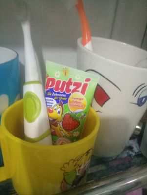 牙膏不错,不辣,香香的草莓味,我闻着都想吃了。不过妹妹今天第一次用牙膏,貌似还不习惯。不过我不会放弃的!