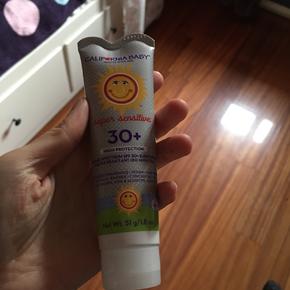 比较厚重,抹上比较黏,但应该还挺管用,宝宝晒黑了一点,完全咩有晒伤,也好洗,清水就可以洗干净。