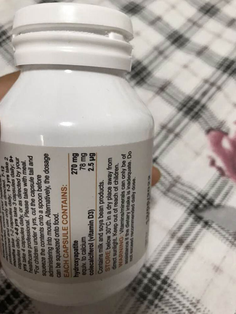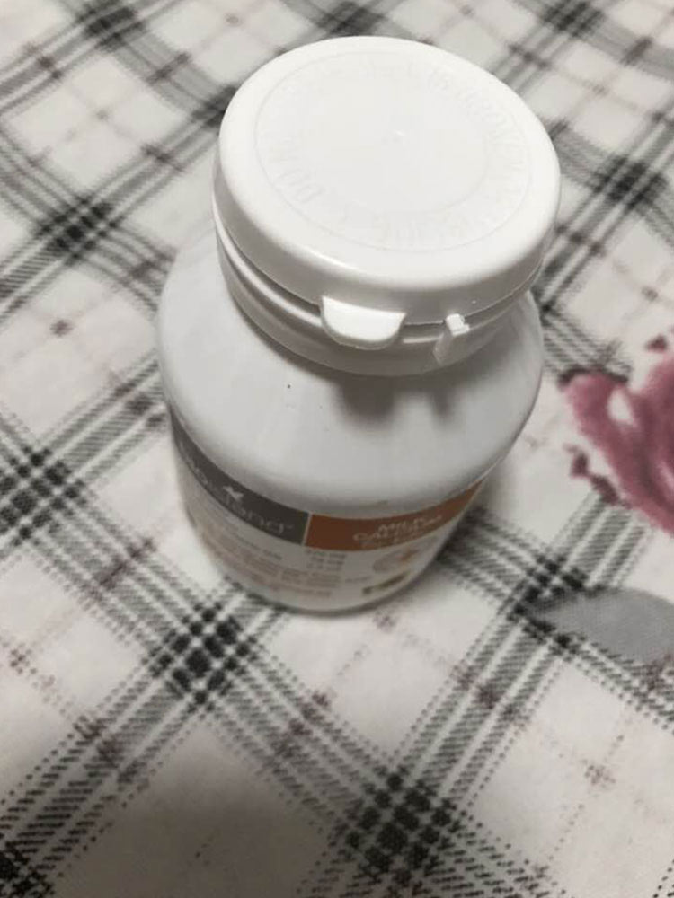 买回来拆开一粒给儿子吃了,我把它掰开放在奶瓶里就着水给儿子一起吃了,一点没有抗拒,我自己尝了一下,没有什么味道,反正我儿子挺喜欢吃的,给孩子补补钙,包装很好,没有问题