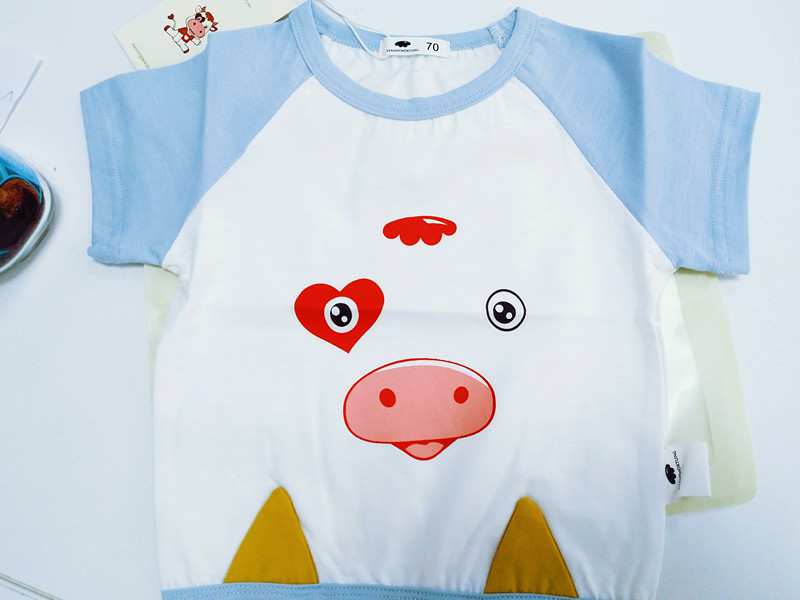 Verantwortung 明德任责 男女宝宝 百搭爱心小牛夏季短袖T恤 蓝色