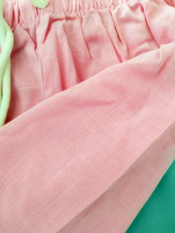 很不错,棉麻料子,适合夏天穿,透气不闷。不褪色,粉色颜色很正,女儿穿着漂亮
