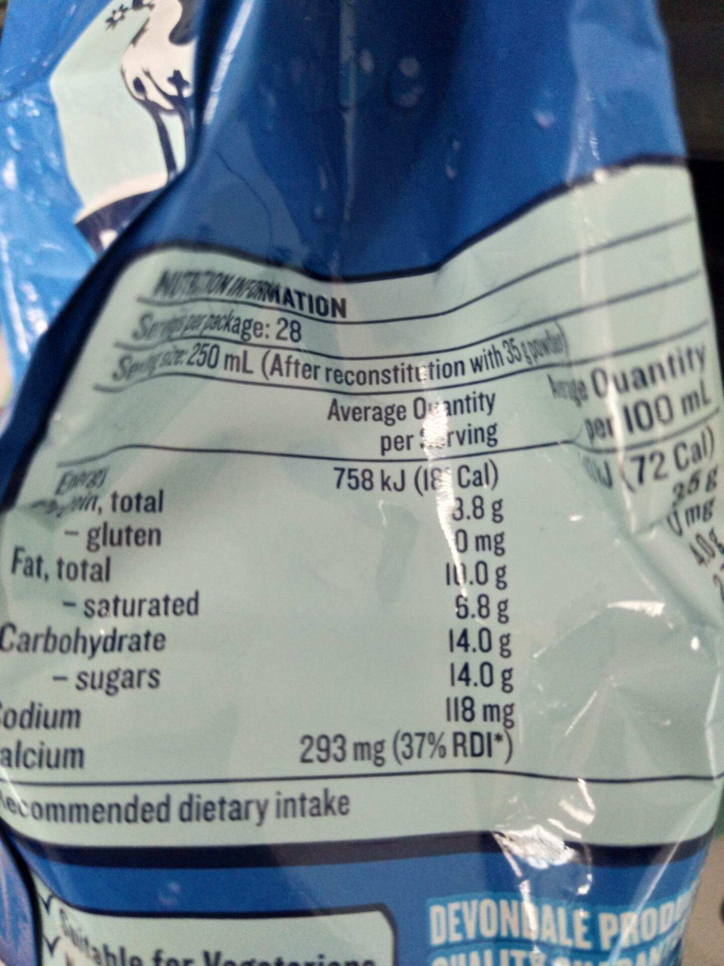 Devondale 澳洲德运全脂高钙成人奶粉 1KG 澳洲本土原版