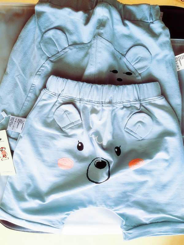 【2件】Verantwortung 明德任责 男女宝宝 可爱小耳朵熊+简约三点小熊PP裤 蓝色