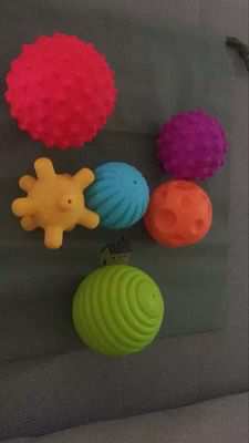 关注这款球很久很久了,特别喜欢,每个球的纹路都不一样,对孩子的触觉会有不同的刺激,练习各种情况下的抓握能力
