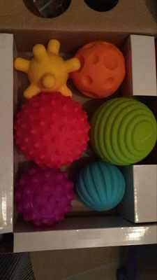 确认晚了,球球很好,颜色很漂亮,捏着不硬,每个球球拿在手里手感很好。宝宝很喜欢玩。安全放心,值得购买