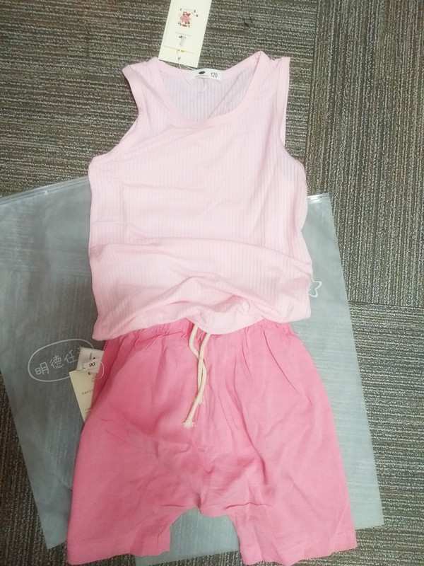 颜色很漂亮,洗时没有掉色,小背心有弹性,裤子是棉麻的,孩子穿着舒服