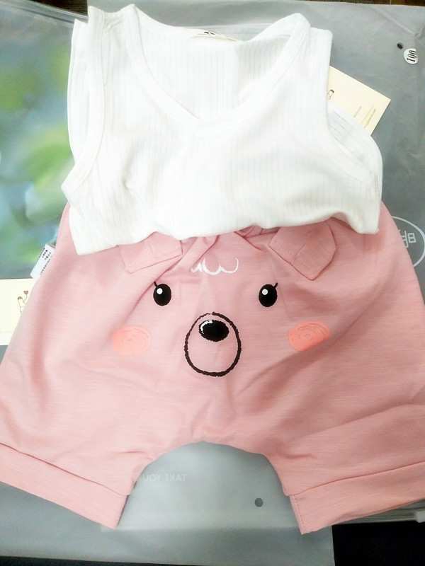 【2件】Verantwortung 明德任责 女宝宝 欧美简约夏季清新纯色小背心 白色+时尚可爱小耳朵熊哈伦五分PP裤 粉色
