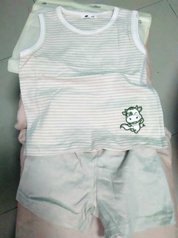 料子质量不错噢,特意买大了一号,这样儿子夏天穿宽松点才舒服,而且明年还能穿,彩棉的摸上去蛮好的,洗过一次不变形不退色,套装的分开一起都很好搭,会再光顾