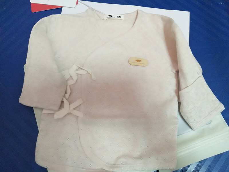 【新疆有机棉】Verantwortung 明德任责 男女宝宝 有机彩棉四季薄款新生儿螺纹提花上衣 蓝色