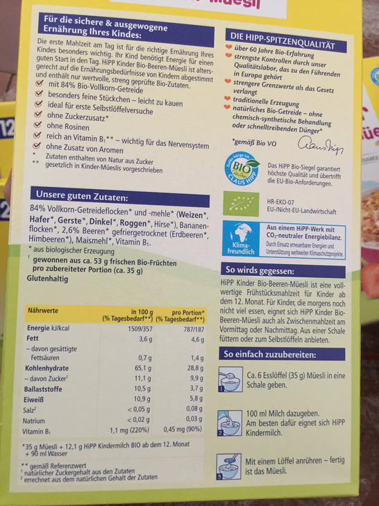 HiPP 德国喜宝全谷物香蕉桨果麦片12个月以上 海外本土原版