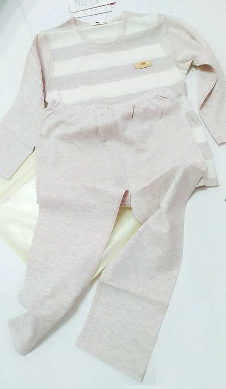 【轻微瑕疵】Verantwortung 明德任责男女宝宝有机彩棉春秋条纹睡衣 浅咖色 70码