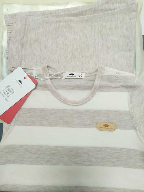 【轻微瑕疵】Verantwortung 明德任责男女宝宝有机彩棉春秋条纹睡衣 浅咖色 70码