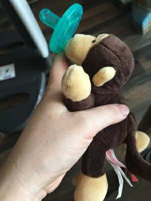 一直用没有玩具的安抚奶嘴,这个还需要适应,现在喜欢把手指头插进安抚奶嘴的洞洞里,有点妨碍。哈哈。但是解决了满床找奶嘴的烦恼!重在颜值,知足!