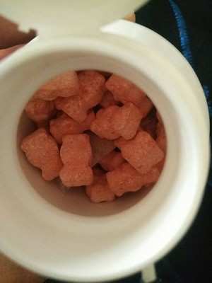 小熊挺可爱的,挺甜的,女儿一直偏矮,之前买6岁前那种,快6岁,就买颗粒的,方便吃