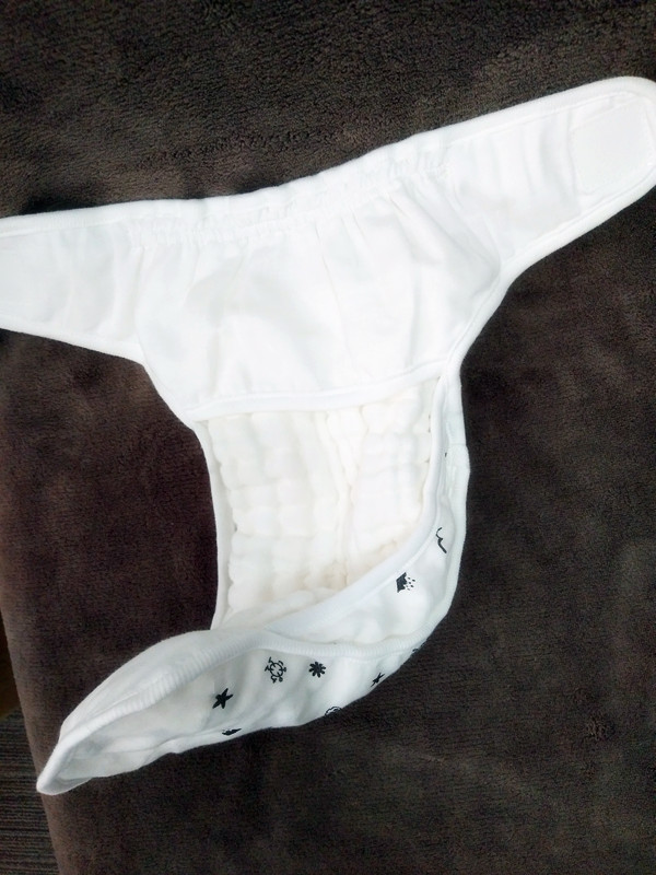 尿布放在裤子里大小正好,是纯棉的,用热水泡下就可以给小宝宝穿喽