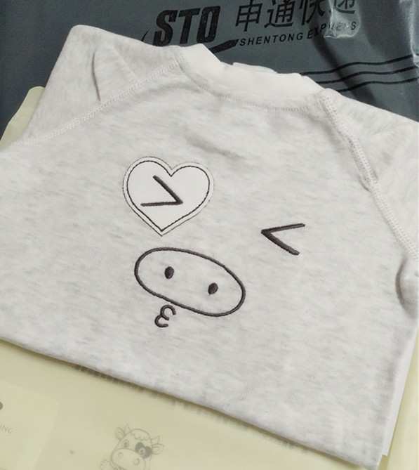 面料是纯棉的,没有味,摸着舒服,图案也很可爱,按扣的给儿子穿时方便