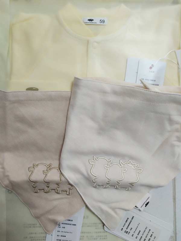 围嘴是彩棉的,很柔软,而且后面有按扣,很人性化,衣服也很漂亮