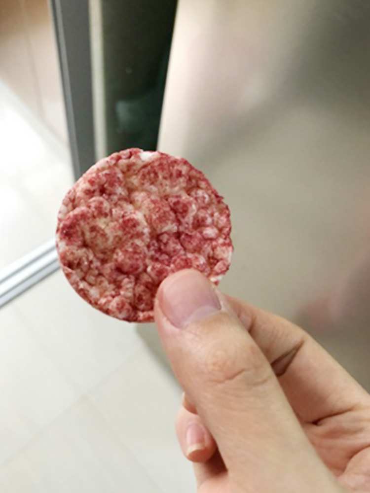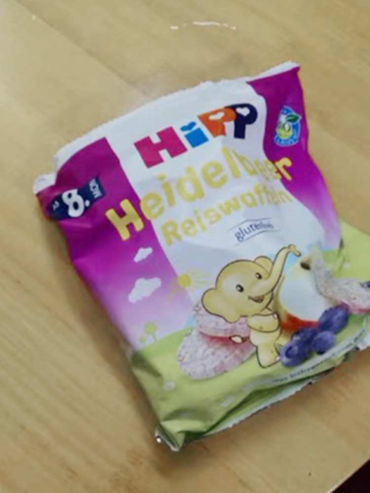 尝了下,有淡淡的大米清香水果酸甜味的,米饼很清脆,但很好化,适合宝宝吃