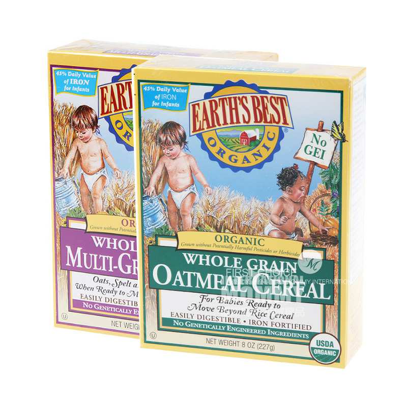 【6件】Earths Best 美国世界最好有机高铁燕麦米粉2段*3+有机高铁混合谷物米粉3段*3 海外本土原版