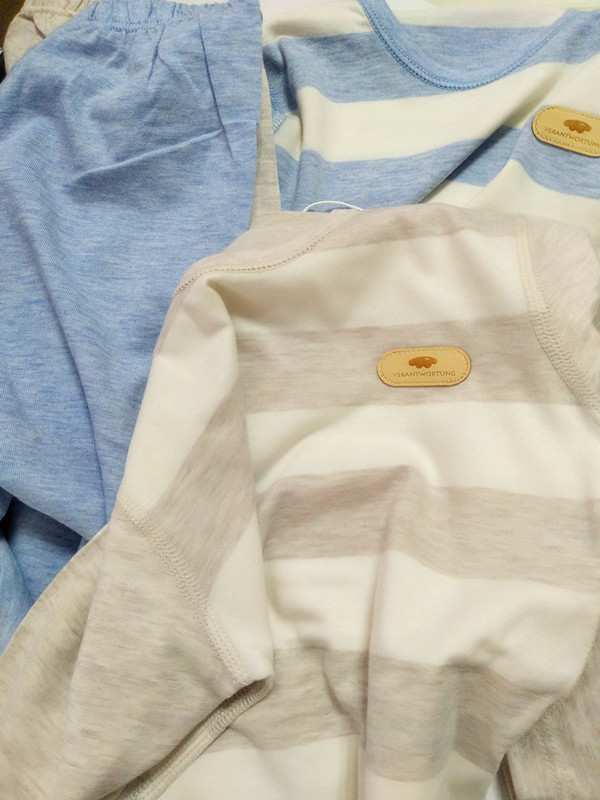 【轻微瑕疵】【2件】Verantwortung 明德任责 男女宝宝 新疆有机彩棉春秋睡衣套装 经典条纹长袖长裤 蓝色+浅咖色