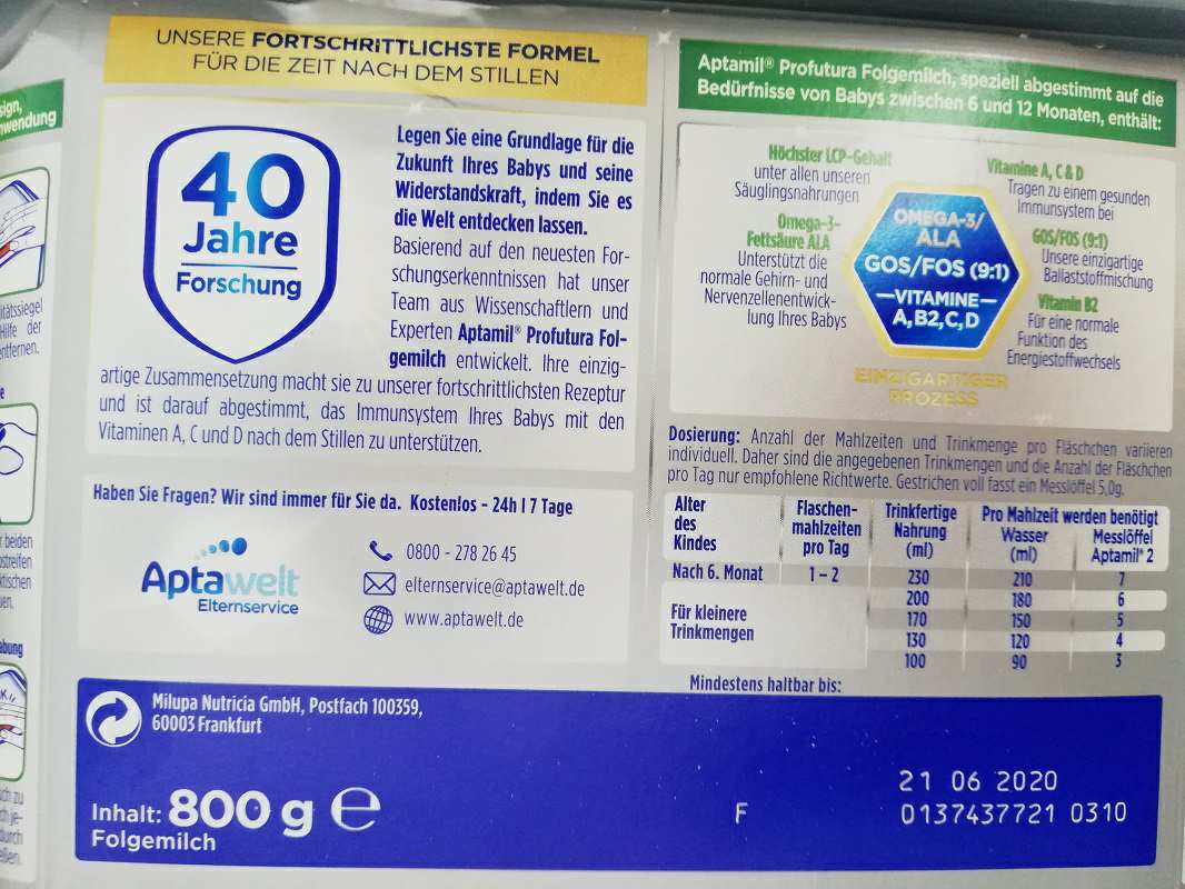 Aptamil 德国爱他美白金版双重HMO婴幼儿奶粉2段 6个月以上 800g 德国本土原版