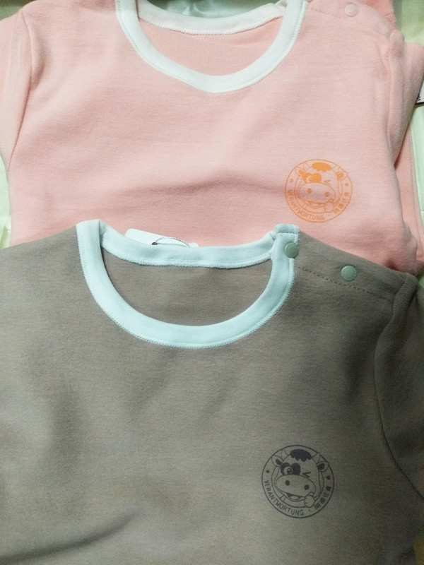 很厚实的上衣,纯棉的,走线很工整,两个孩子穿着很可爱