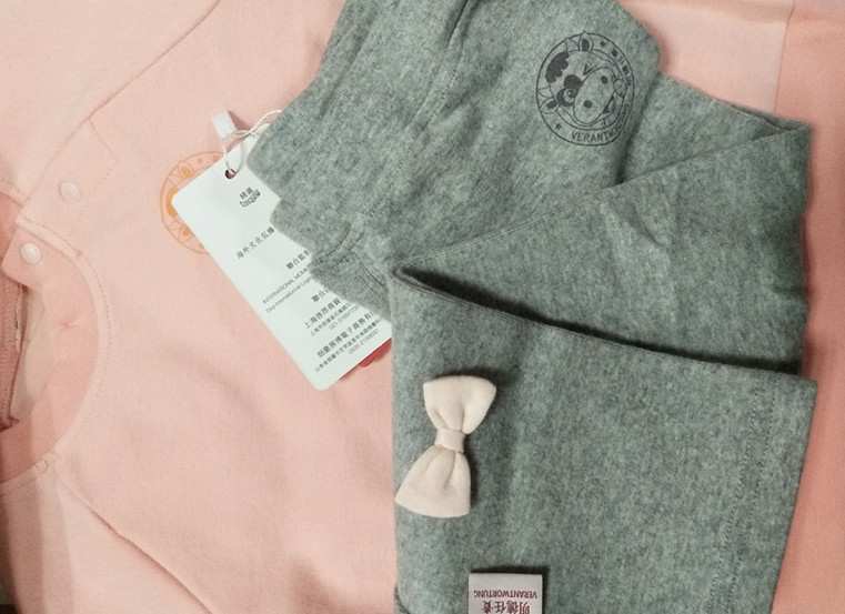 【2件】Verantwortung 明德任责 男女宝宝 有机棉长袖打底衫 活力纯色 粉色+有机棉打底裤 可爱蝴蝶结灰色
