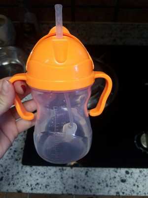 杯子挺漂亮的,宝宝很喜欢自己玩。时不时凑上去吸一下,相信宝宝会喝的越来越好。邻居带着宝宝来我家里玩,他家宝宝也喜欢这个杯子,也会把嘴巴凑上去自己吸。吸管细细的,十字口的,水温不要太烫,不然会有水冒出来。