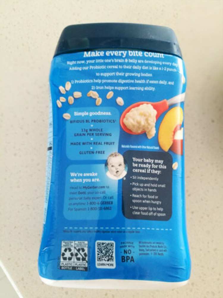 Gerber 美国嘉宝婴幼儿辅食蜜桃苹果燕麦益生菌米粉二段6个月以上227g 海外本土原版
