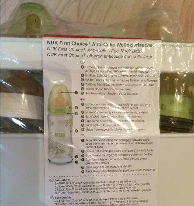 NUK 德国NUK宽口乳胶奶嘴玻璃奶瓶4件套 海外本土原版