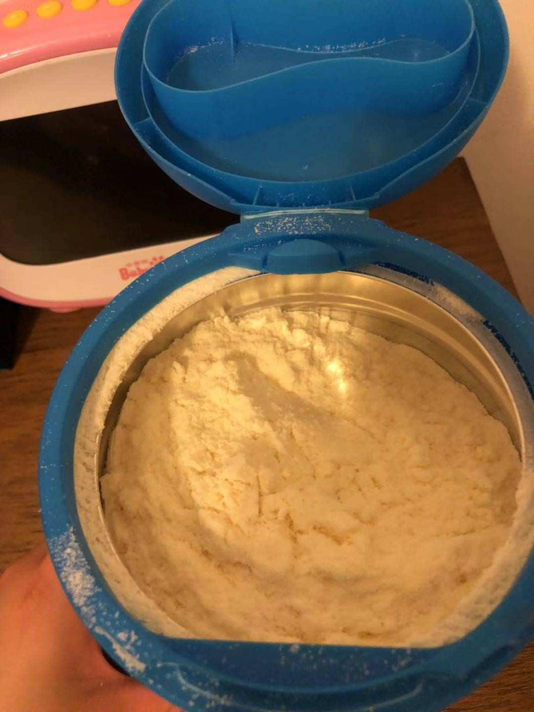 奶粉今天打开给宝宝喝,粉质很细腻,看着很不错,盖子设计也很贴心,有单独放勺子的地方,不用在奶粉里再翻找了,客服服务也满意,总之是很不错的一次购物~
