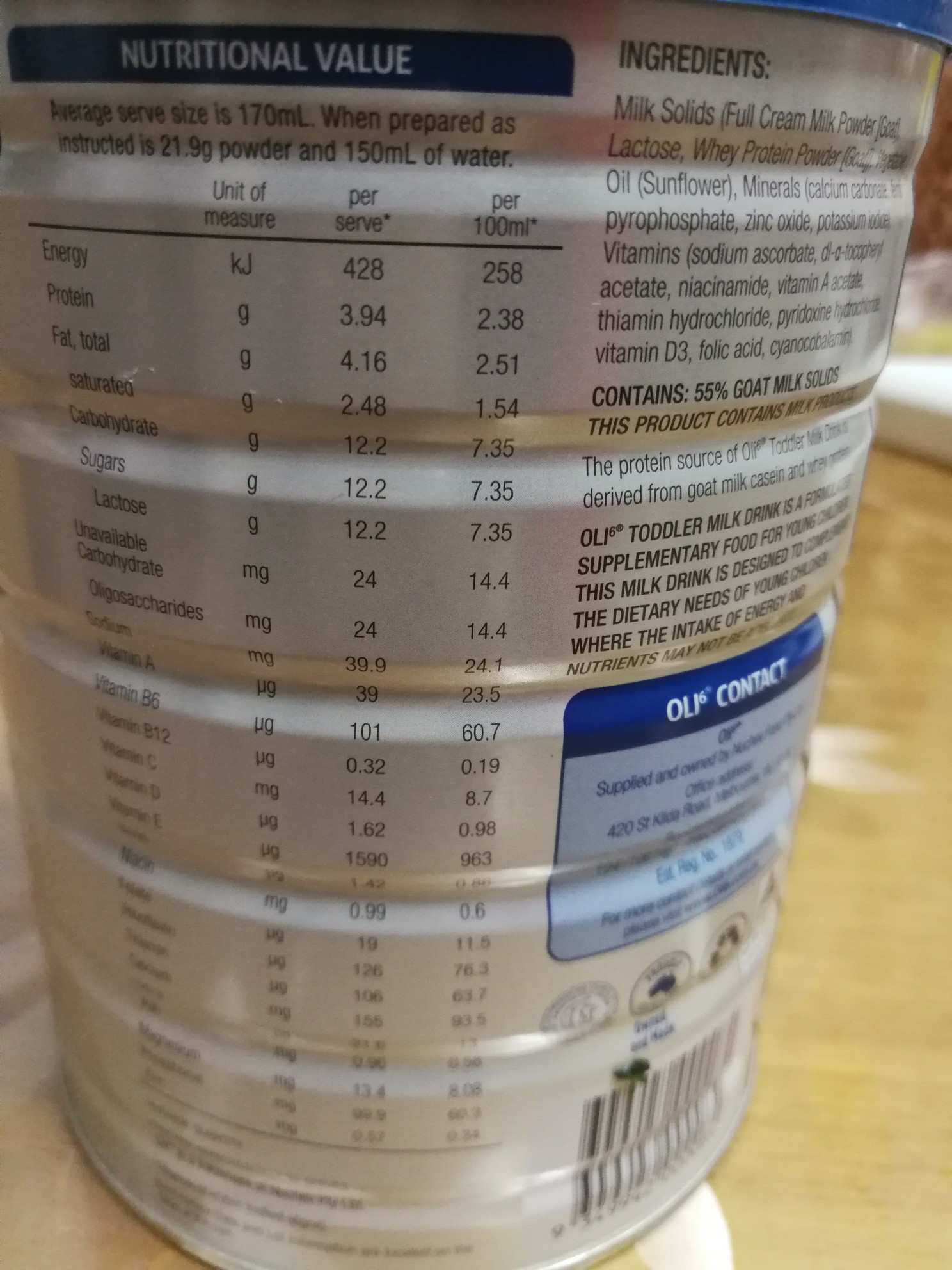 Oli6 澳洲颖睿婴儿羊奶粉3段 1-3岁 800g 澳洲本土原版