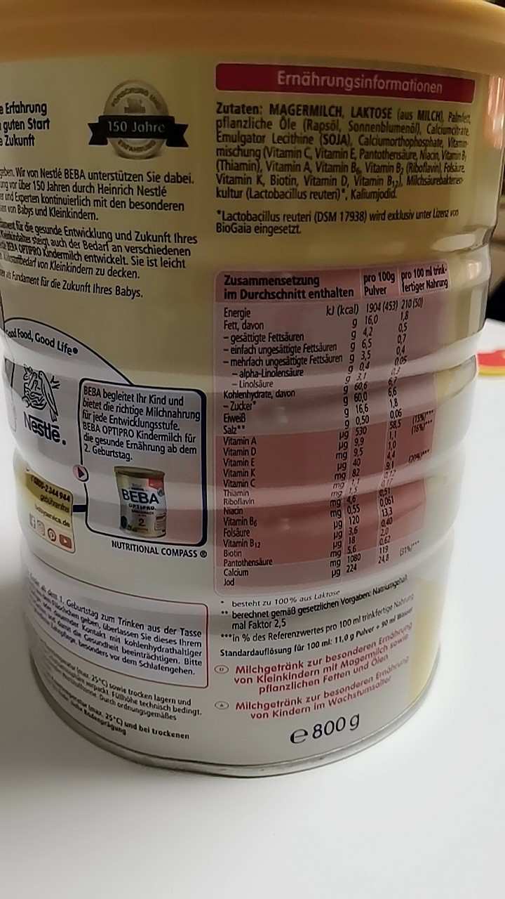 BEBA 德国雀巢贝巴能恩婴儿奶粉1+段 800g*4 德国本土原版