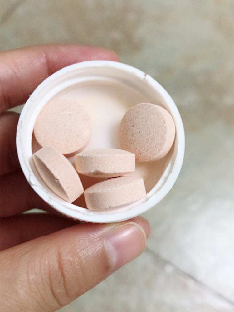 六岁儿子一次咀嚼两片不费力,吃到最后有点酸酸的碳酸口感,这回方便,走哪带到哪,随时随地都可以补钙。